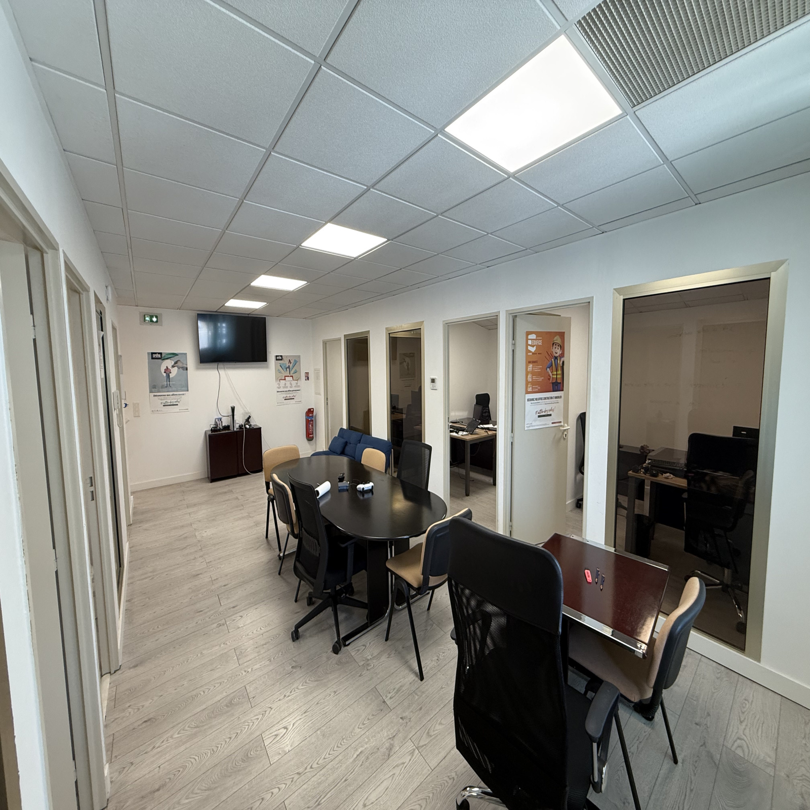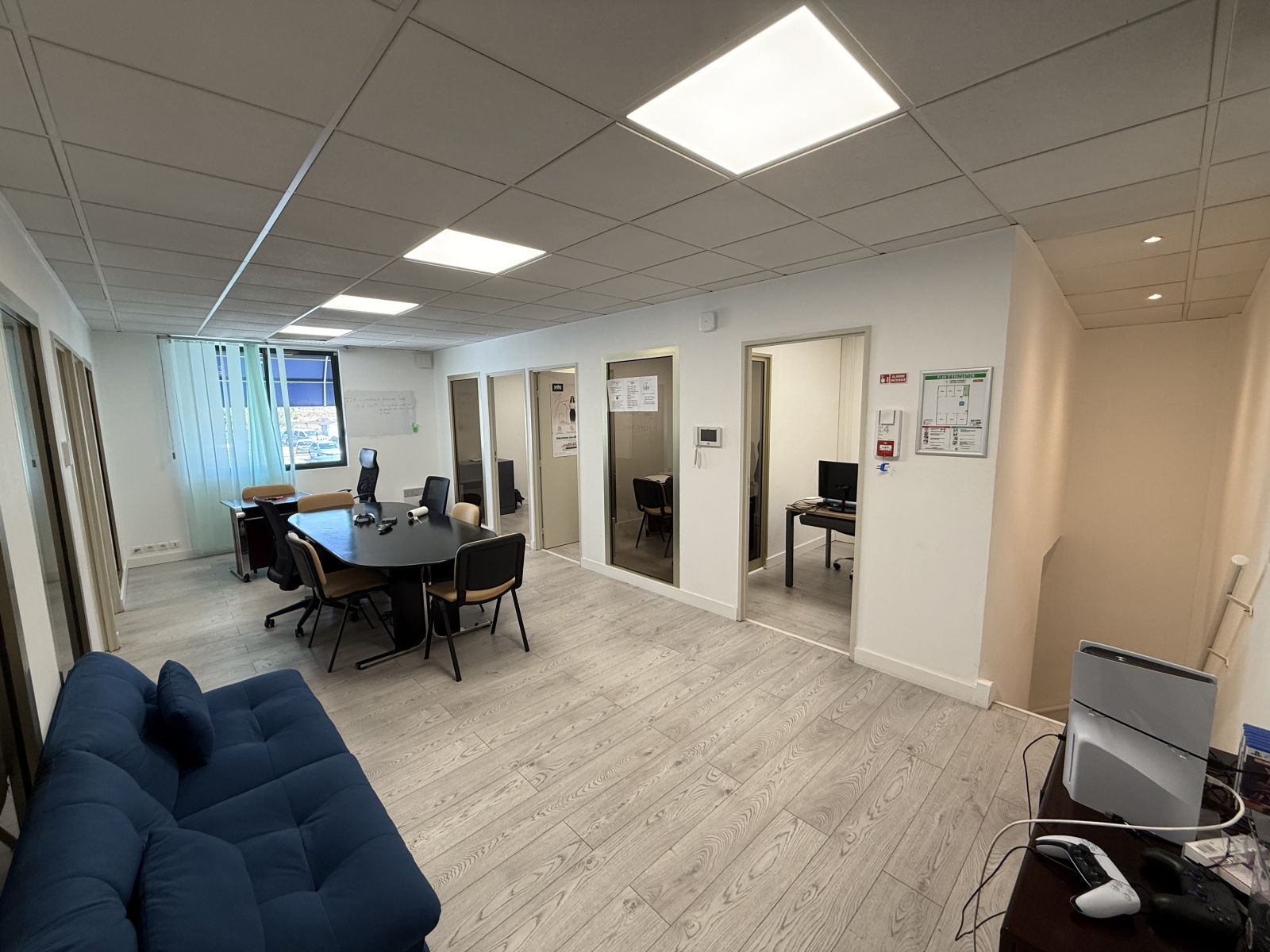 Superbes bureaux de 160 m2 sur deux niveaux situés au coeur d'un complexe d'activités économiques de standing sécurisé et gardé. Cet ensemble dispose d'un grand hall d'accueil, de 6 bureaux dont une salle de conférence. Sa disposition en angle avec de larges vitrines en pleine façade autoroute lui confèrent une visibilité sans pareil.