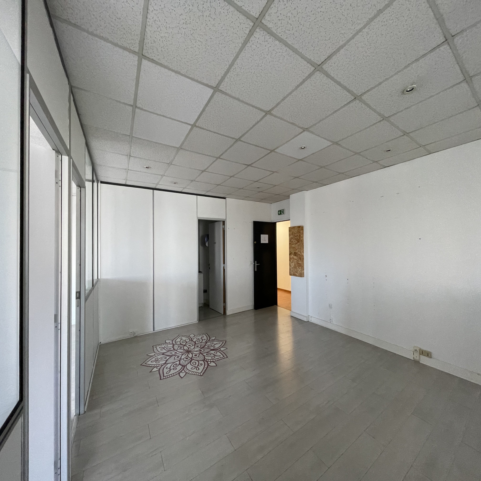 Ces bureaux possèdent un espace accueil, une grande salle de travail ouvert, un bureau individuel, une cuisinette et un bloc sanitaire avec lave-mains.