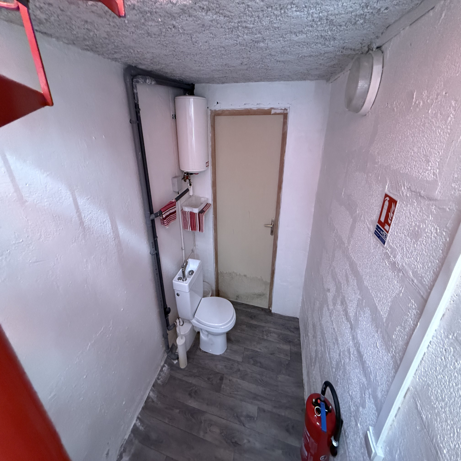 Au niveau inférieur se trouve le bloc sanitaire avec lave-mains.