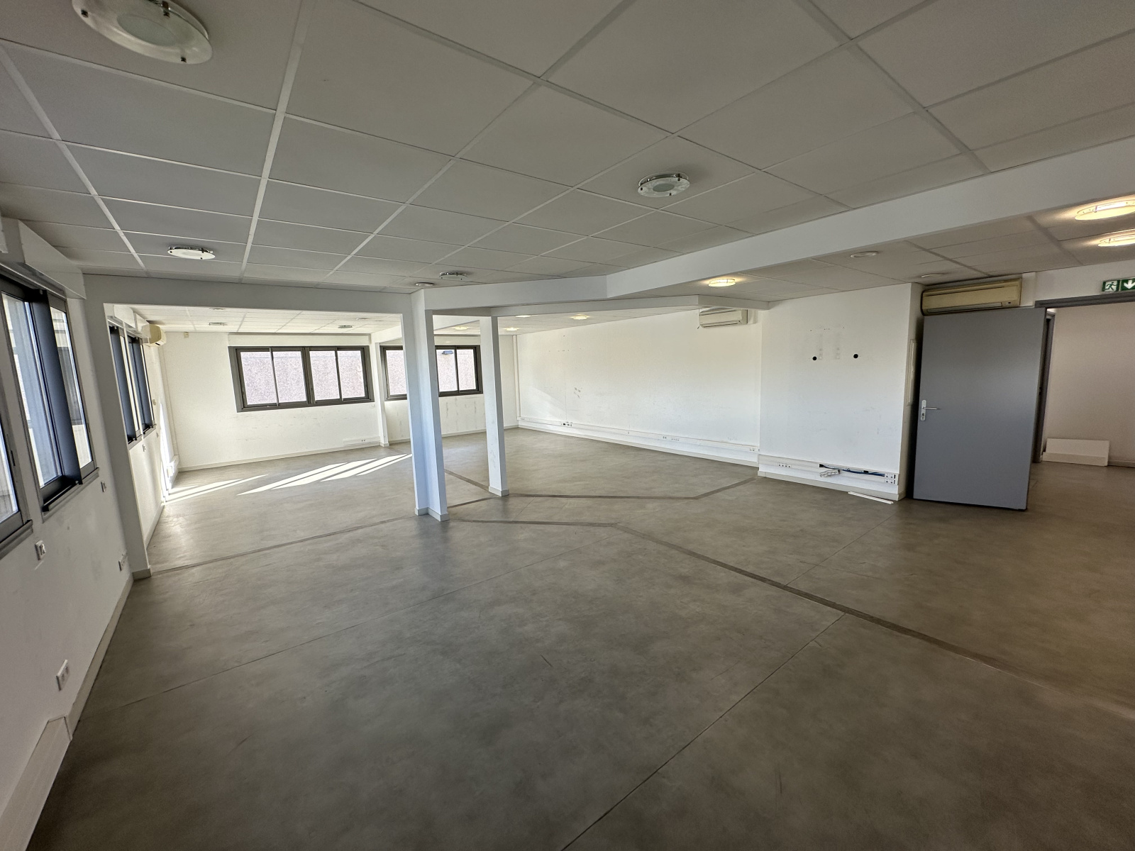 Il se développe sur deux niveaux avec au rez-de-chaussée un espace de travail ouvert avec accès à un rideau électrique motorisé, un bureau individuel, une cuisinette.