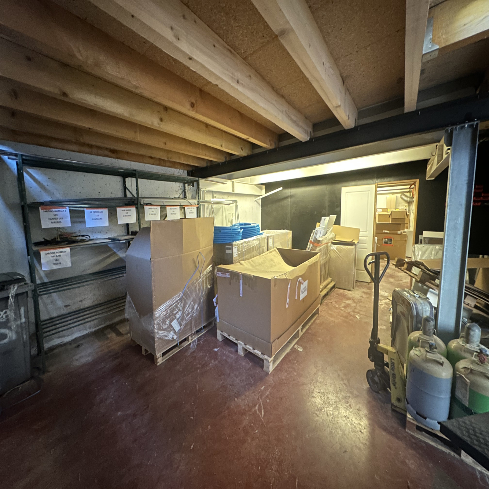 D'une superficie de 800 mètres carrés, ce bien comprend deux espaces d'entreposage, un vestiaire, des espaces bureaux et un appartement de fonction avec entrée indépendante.